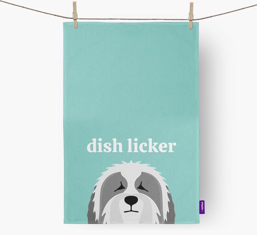 'Dish Licker' - Personalized Polish Lowland Sheepdog Dish Towel