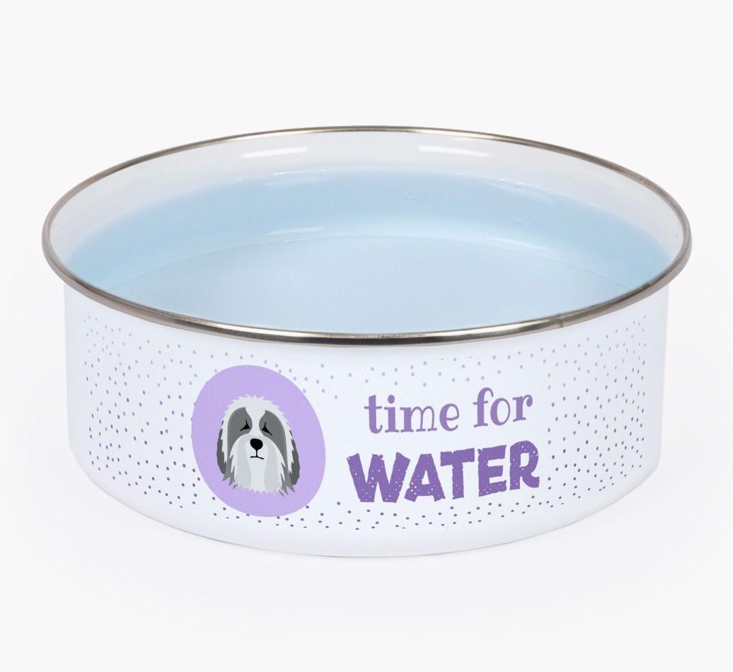 Time For Water: Personalized Enamel Polish Lowland Sheepdog Bowl