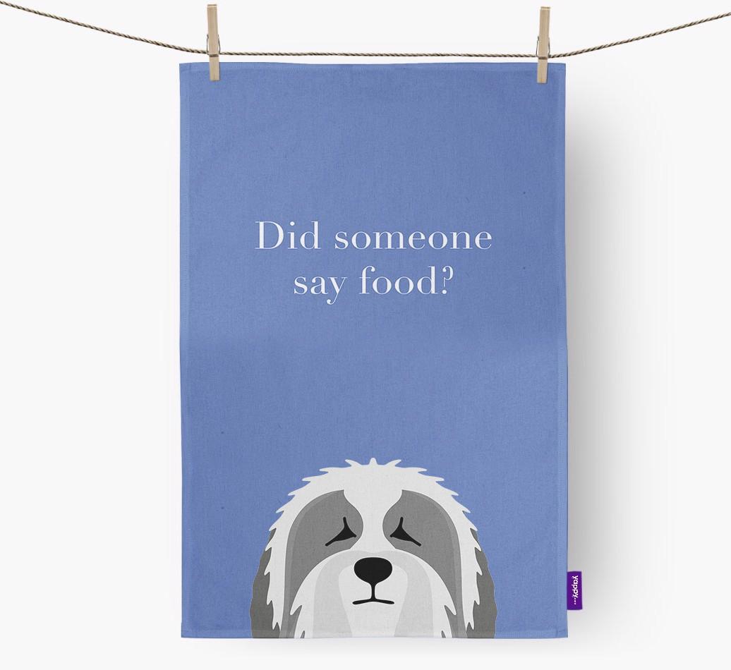 'Did Someone Say Food?' - Personalized Polish Lowland Sheepdog Dish Towel