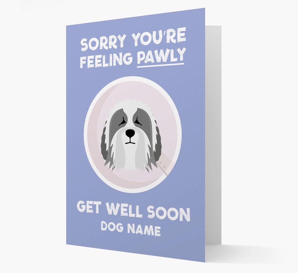 'Sorry You're Feeling Pawly' - Personalized Polish Lowland Sheepdog Get Well Soon Card