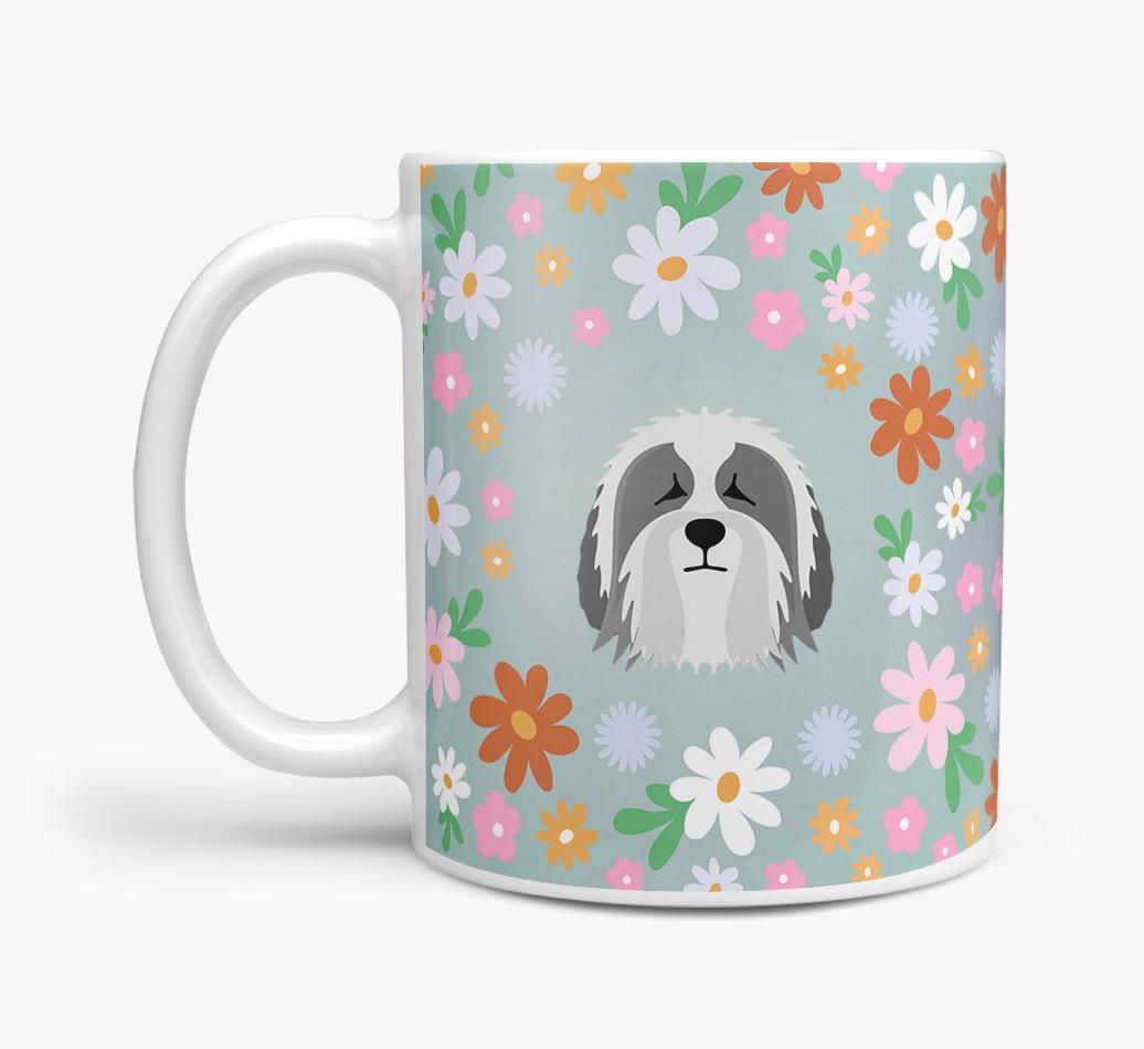 Featuring a colorful bunch of flowers, this mug is printed with the words 'woofly grandma' on one side of the mug and your Nizinny's cute icon on the other. Bloomin' lovely!