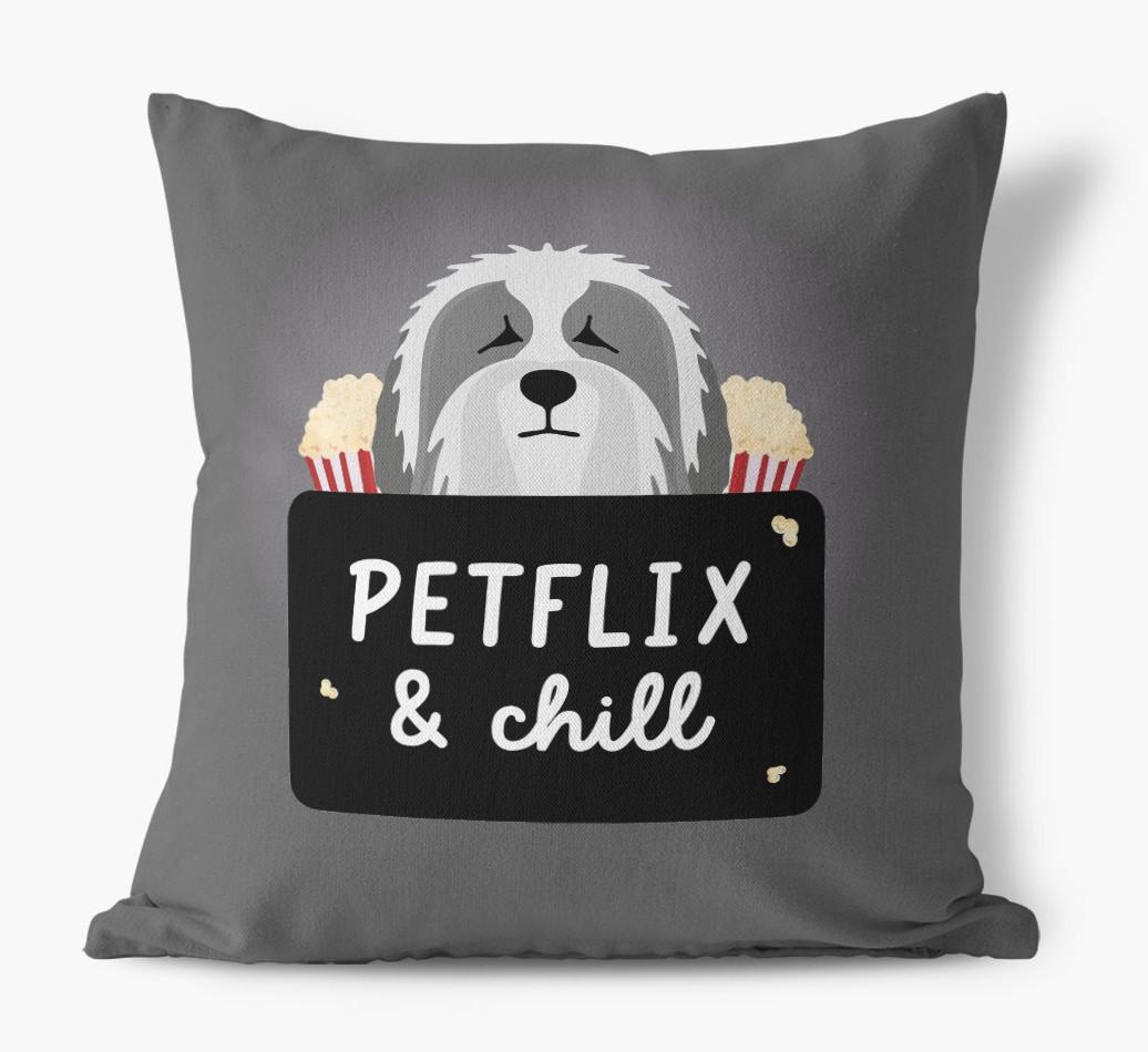 Petflix & Chill: Personalized Polish Lowland Sheepdog Canvas Pillow