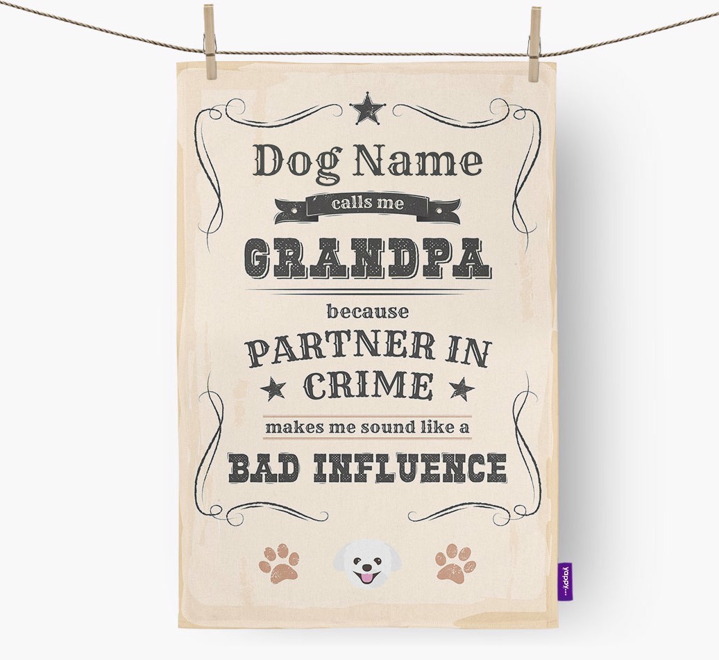 Are your grandpa and Your Pomapoo a mischievous pair when their together? Well, this dish towel will let all his guests know that Your Pomapoo and grandpa really are partners in crime (even if he doesn't want to admit it)!