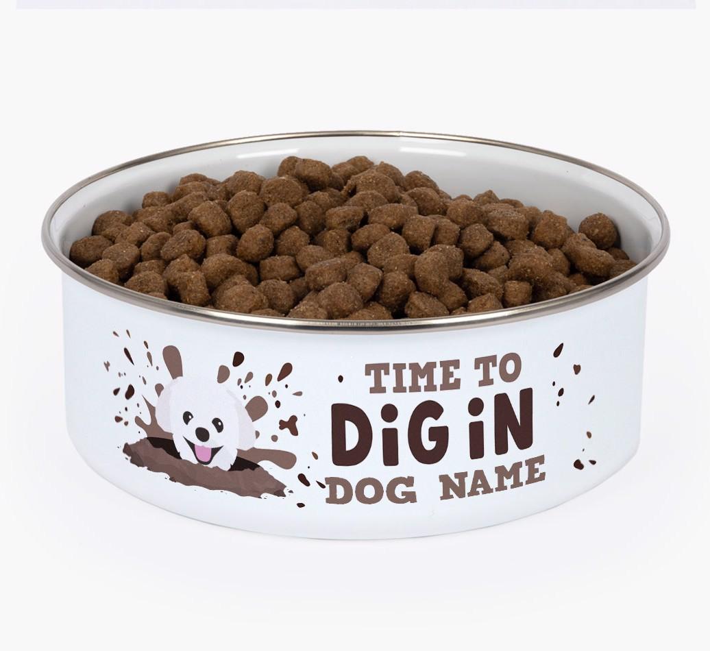 Personalized with your Pomapoo's name and icon, this bowl is a fun way to let Pomapoo know that it's time to dig into their dinner.