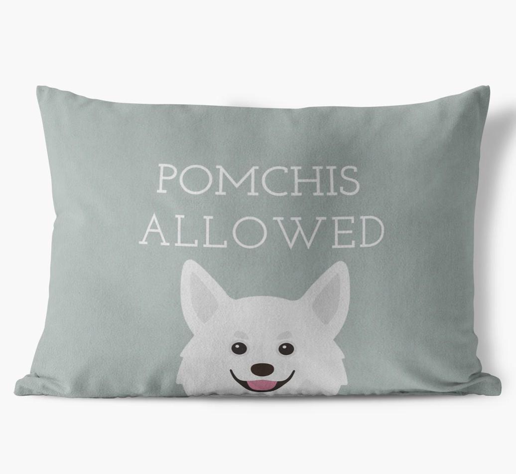This exclusive, luxurious pillow is printed with the words ‘Pomchis Allowed’, which I’m sure Your Pomchi would definitely approve of.
