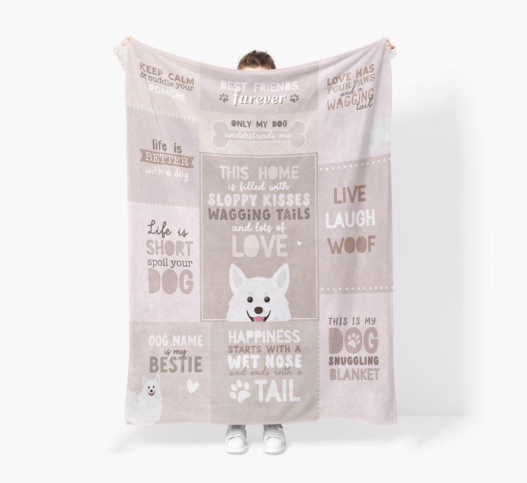 Filled with pawgeous quotes about your furry friend, this blanket is the perfect way to make naptimes with your Pomchi the coziest ever.