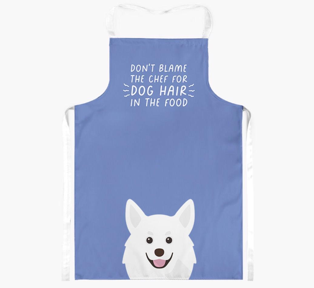 If you’re getting tired of people coming round and moaning about Pomchi hair in the food, you’re going to need this apron to remind them that you cannot be blamed, it’s Pomchi’s fault!