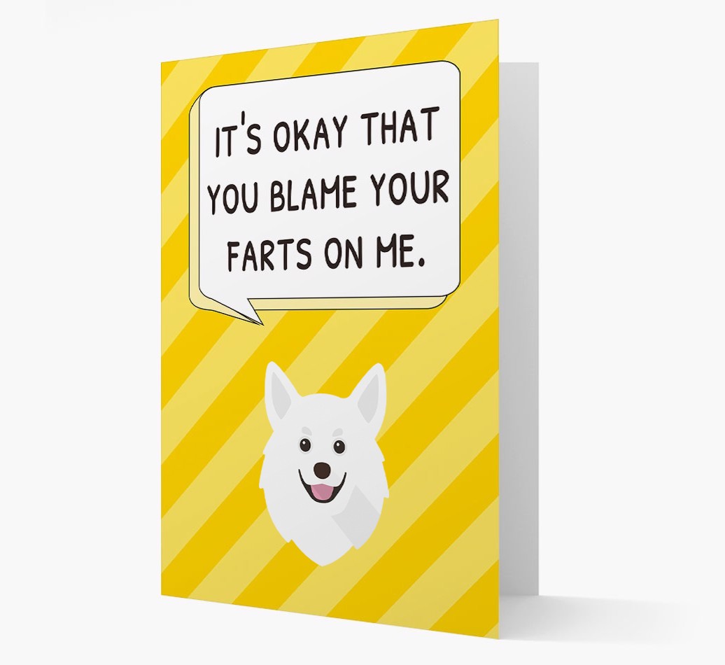 Does Your Pomchi take the blame for their human's farts? Well, we think it's time your Pomchi lets them know that the jig is up with this funny card!