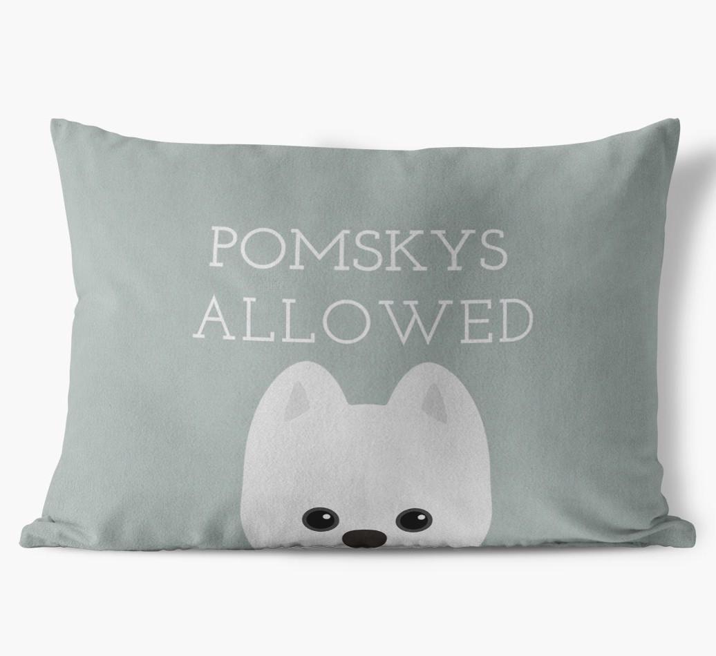 This exclusive, luxurious pillow is printed with the words ‘Pomskys Allowed’, which I’m sure Your Pomsky would definitely approve of.