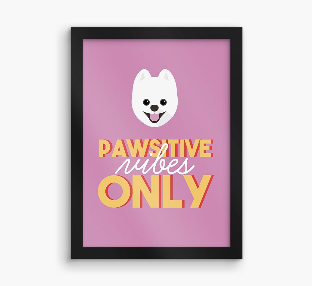 Featuring your Pomsky’s yappicon and vibrant text that says 'pawsitive vibes only', this print is pawfect for adding a burst of color and plenty of good vibes into your home (with a helping paw from Pomsky).