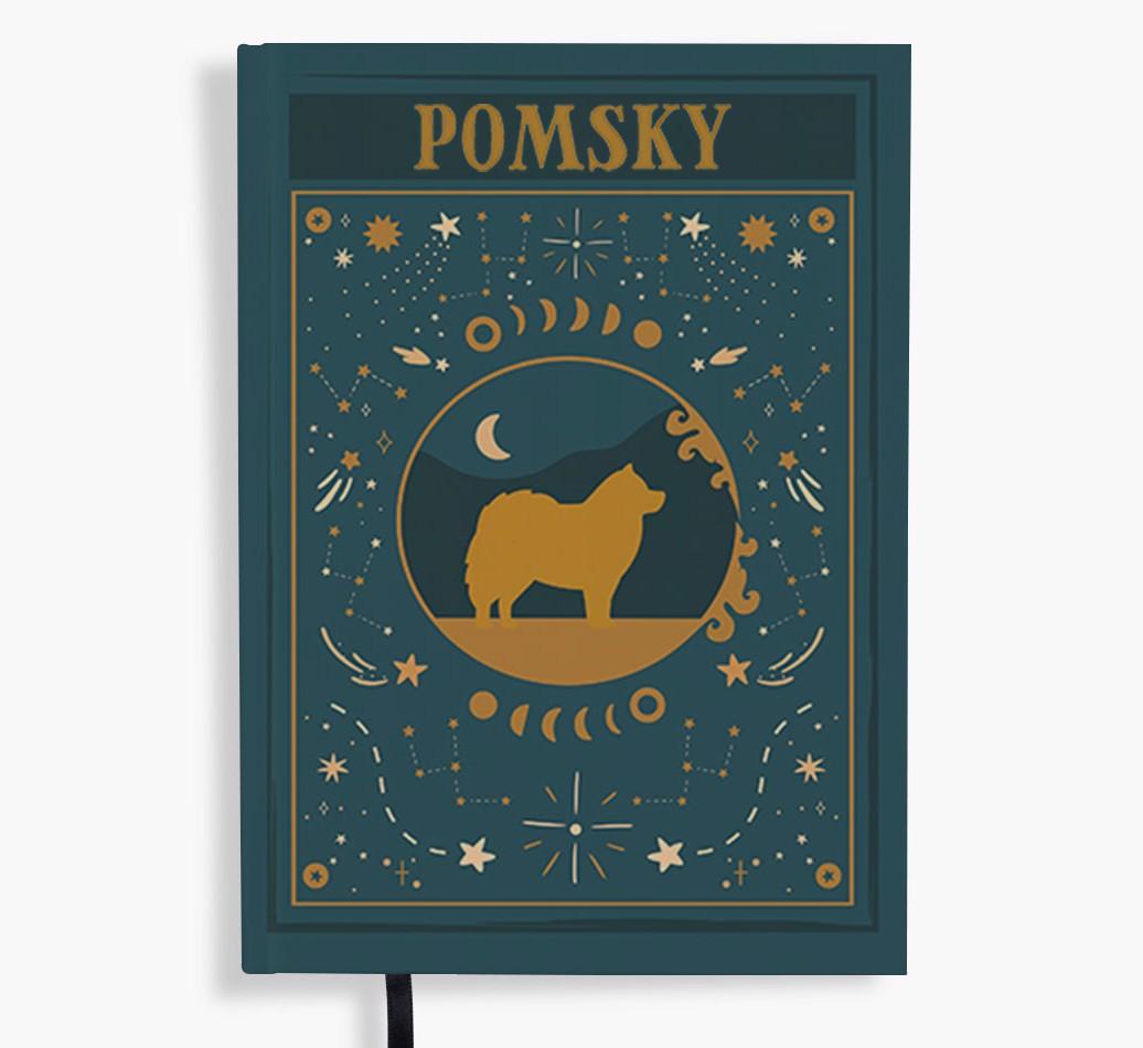 Featuring a seriously stylish tarot design, this notebook enters a new phase of cuteness with the added personalization of Pomsky’s silhouette and their breed name on the cover.