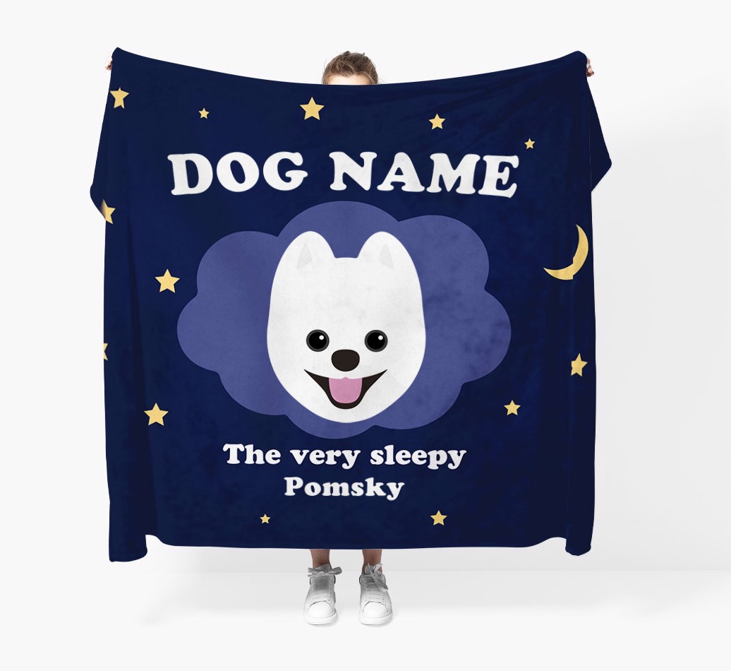 'The Very Sleepy...' - Personalized Pomsky Throw Blanket
