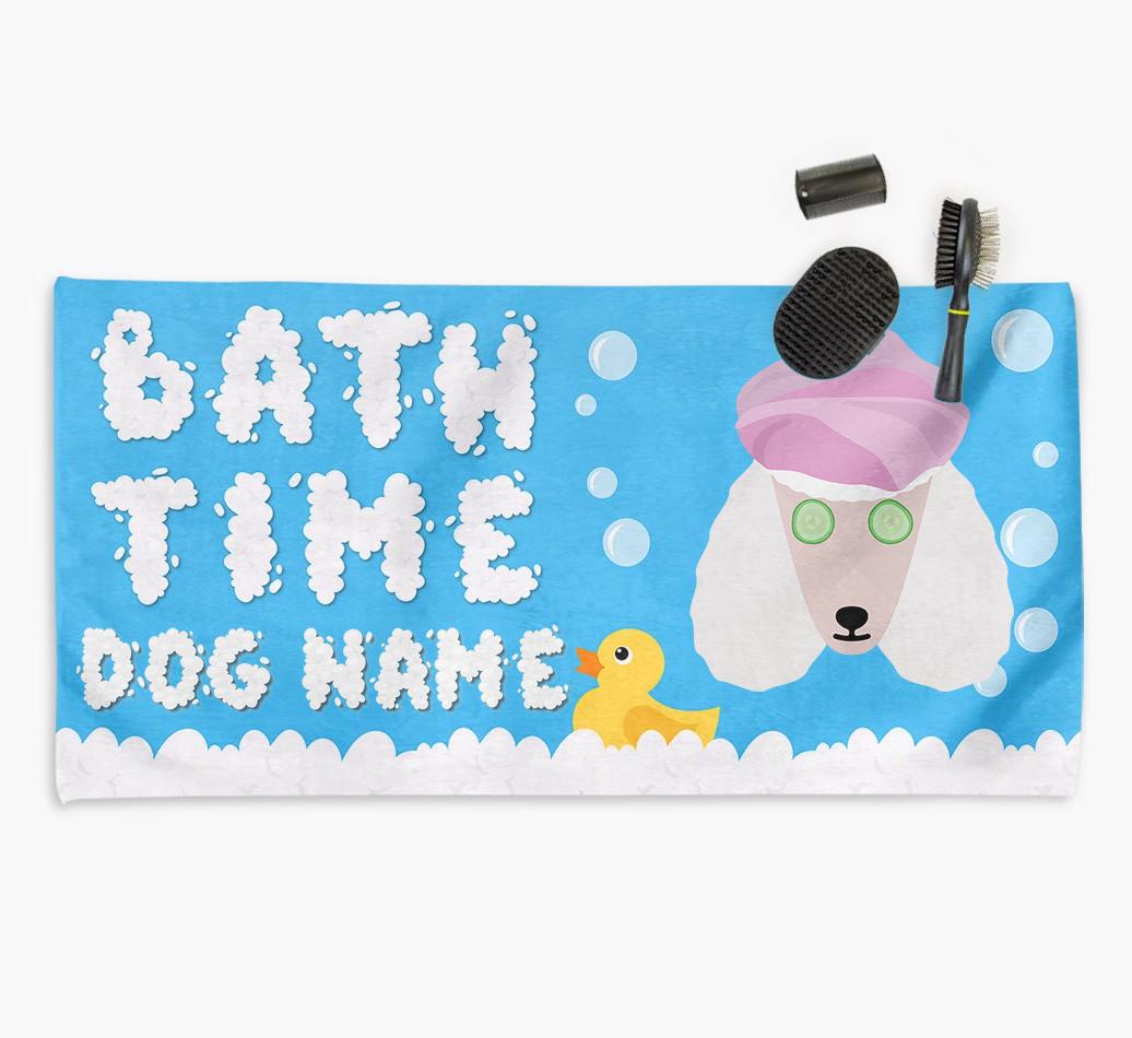 Does Your Poodle love bubble baths? Once they've bathed, take their bathtime experience to the next level by wrapping them up in their very own towel, that's personalized just for them.