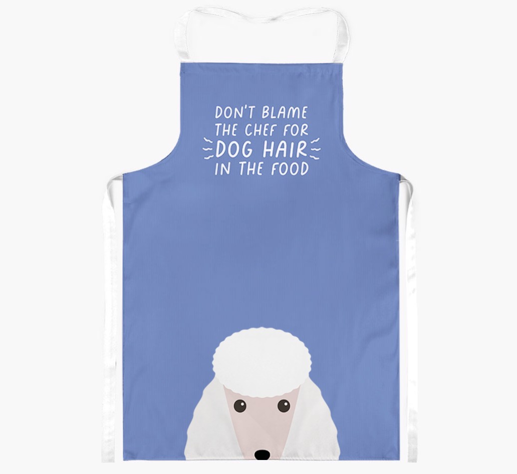 This funny apron will warn friends and family not to blame the chef for dog hairs in their food, they have Poodle to thank for that!
