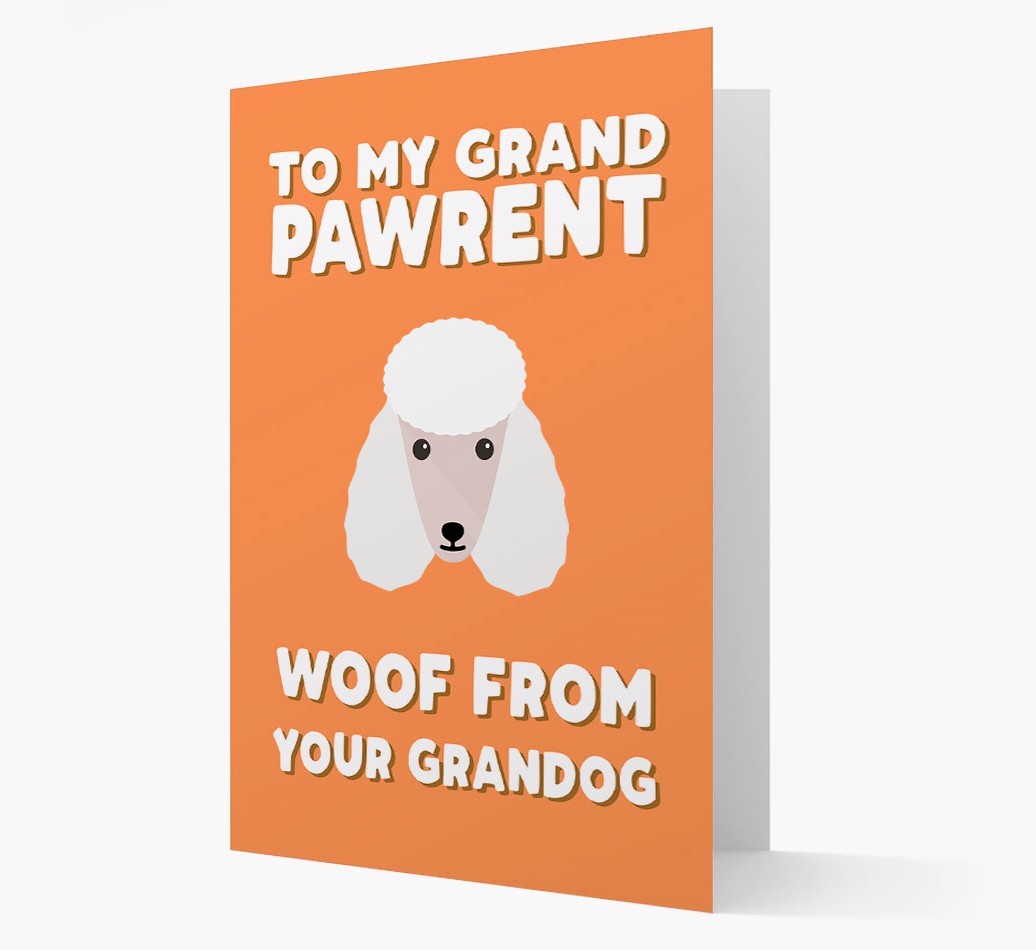 Featuring your Poodle's pawsome icon and available in four eye-catching colors, Poodle's grandpawrent will feel the woof each time they look at this card.