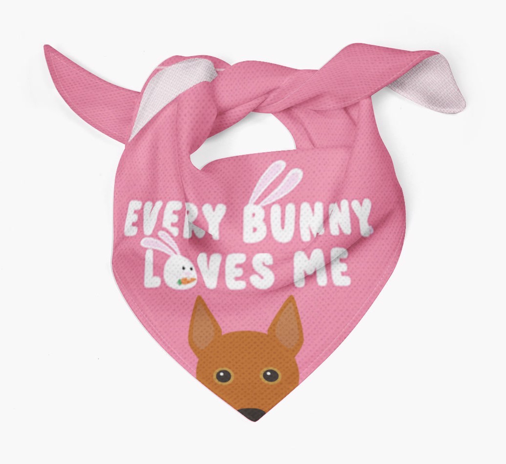 Tailored with the fabulous saying: 'Every Bunny Loves Me', this bandana is the perfect addition to your Portuguese Podengo's wardrobe! Available in four egg-ceptional colors and personalized with your Portuguese Podengo's icon, this is the perfect pawchase for Easter!