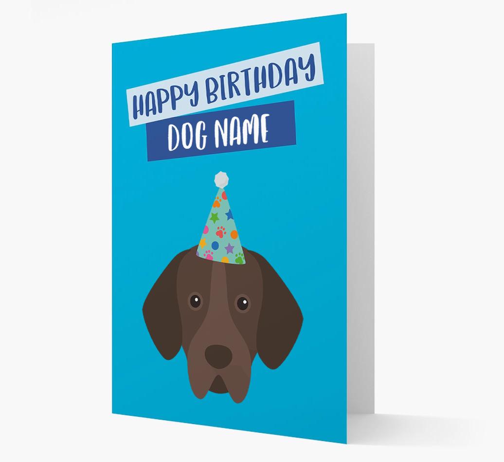 Why not wish Your Portuguese Pointer Happy Birthday in true pawty style with this party hat birthday card.