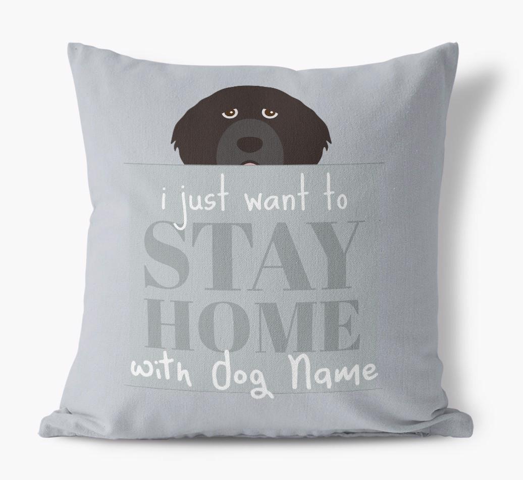 Stay Home: Personalized Portuguese Water Dog Canvas Pillow