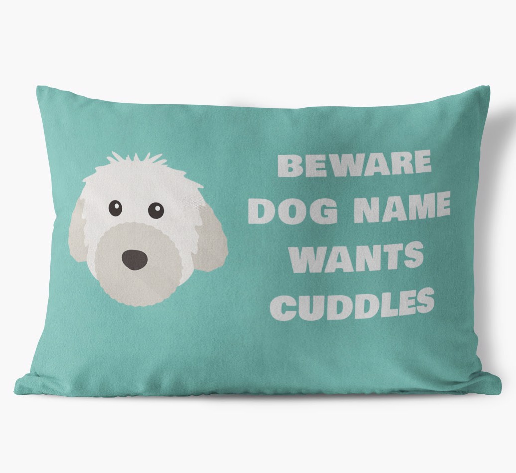 Beware of Cuddles: Personalized Powderpuff Chinese Crested Soft Touch Pillow