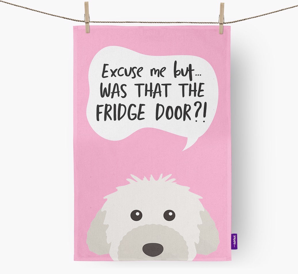 'Was That The Fridge Door?!' - Personalized Powderpuff Chinese Crested Dish Towel