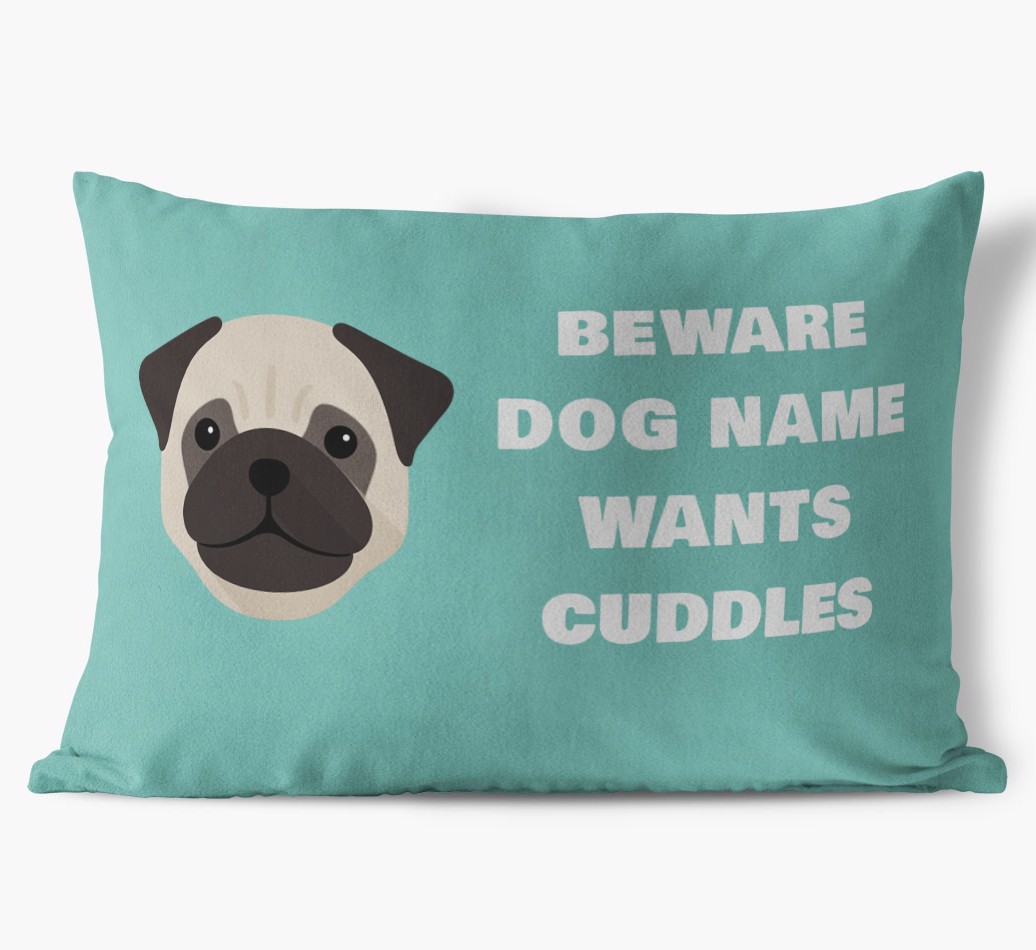 Beware of Cuddles: Personalized Pug Soft Touch Pillow