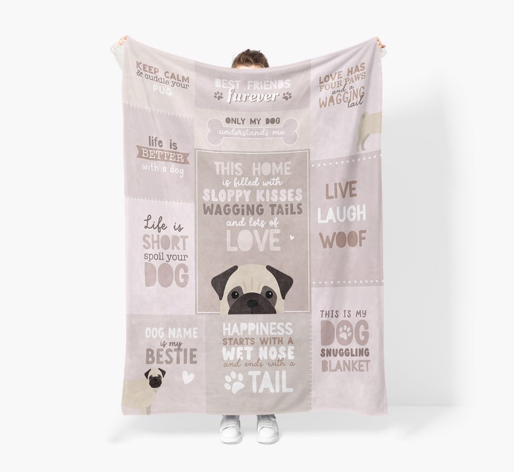 Filled with pawgeous quotes about your furry friend, this blanket is the perfect way to make naptimes with your Pug the coziest ever.