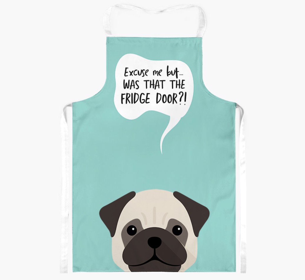 Featuring your hungry hound's cheeky icon and available in five eye-catching colors, this apron is a must-have for parents of greedy pups!