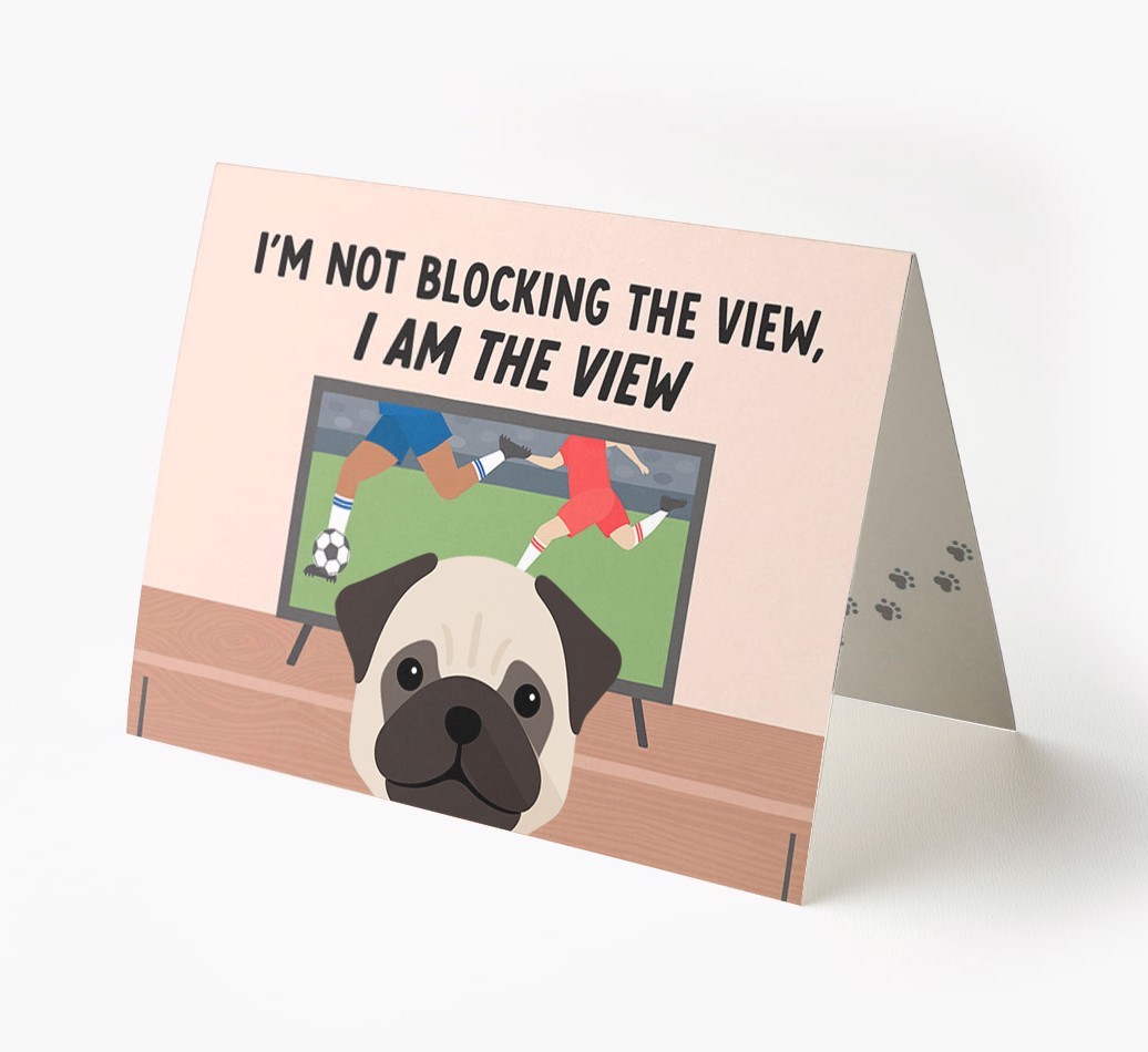 If you know a Pug and a footie fanatic who struggles to divide their attention between Your Pug and the football, then this card is the pawfect way to help them choose!