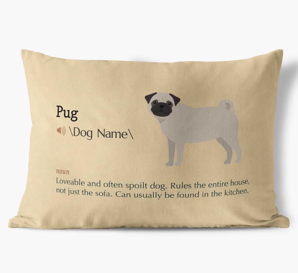 Personalized just for Your Pug and featuring a unique Pug definition and silhouette, this pillow truly is like no other.