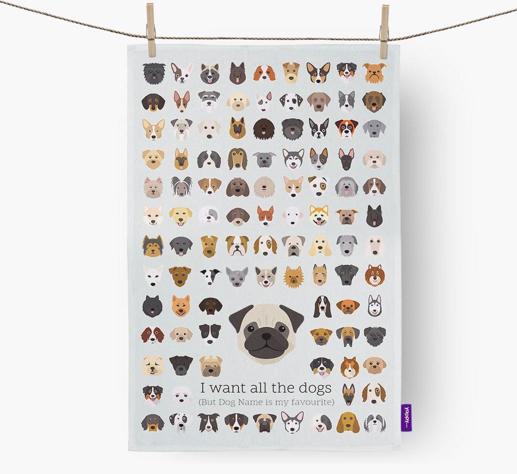 'I Want All the Dogs' - Personalized Pug Dish Towel