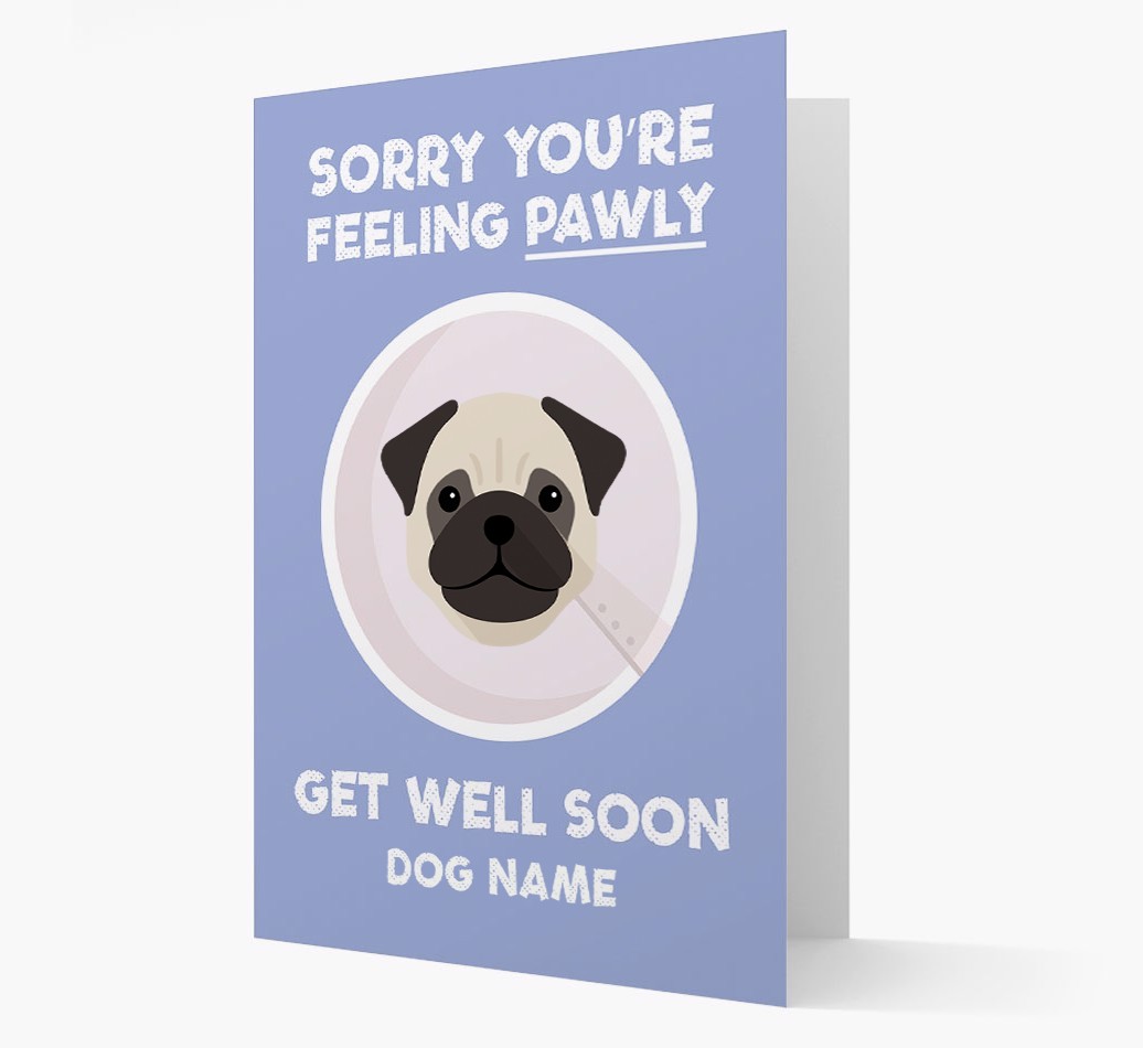'Sorry You're Feeling Pawly' - Personalized Pug Get Well Soon Card