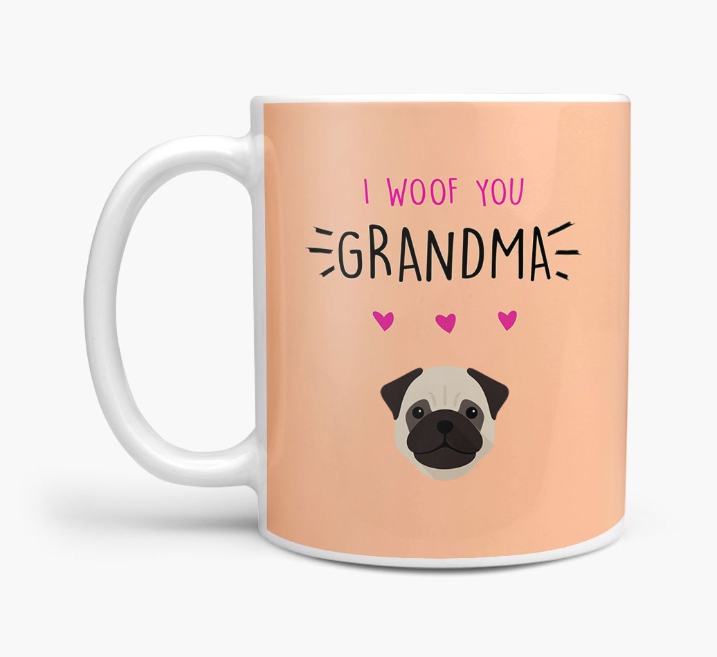 Personalized with your pup's adorable icon, this mug is a charming way to treat your pup's grandma and express how much you and Pug woof them.