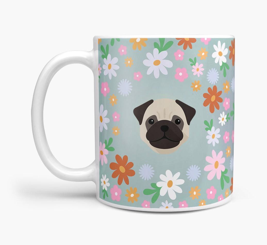 Featuring a colorful bunch of flowers, this mug is printed with the words 'woofly grandma' on one side of the mug and your Pug's cute icon on the other. Bloomin' lovely!