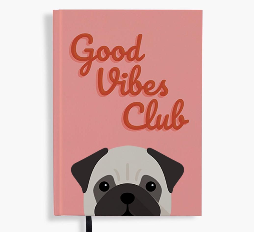 Are you and Pug all about the good vibes? Customized with your pup’s cheeky icon, this sleek and stylish notebook is the pawfect way to show off the lead member of the Good Vibes Club. Plus, as it's available in a range of eye-catching colorways, it'll encourage pawsitivity and good vibes each time you put pen to paper.
