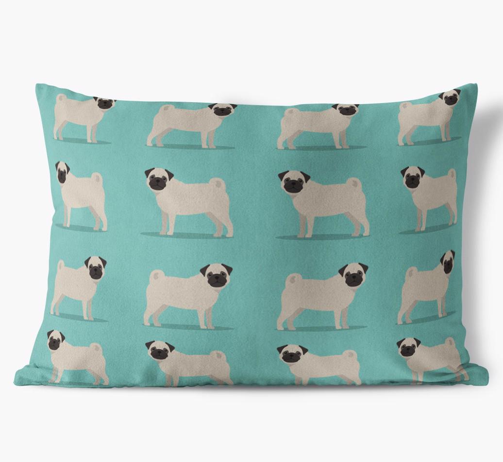 Featuring a pattern of our pawsome Pug icons, this pillow really is wagnificent!