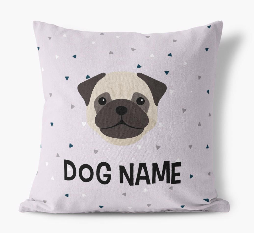 Triangle Pattern with Pug's Icon: Personalized Canvas Pillow