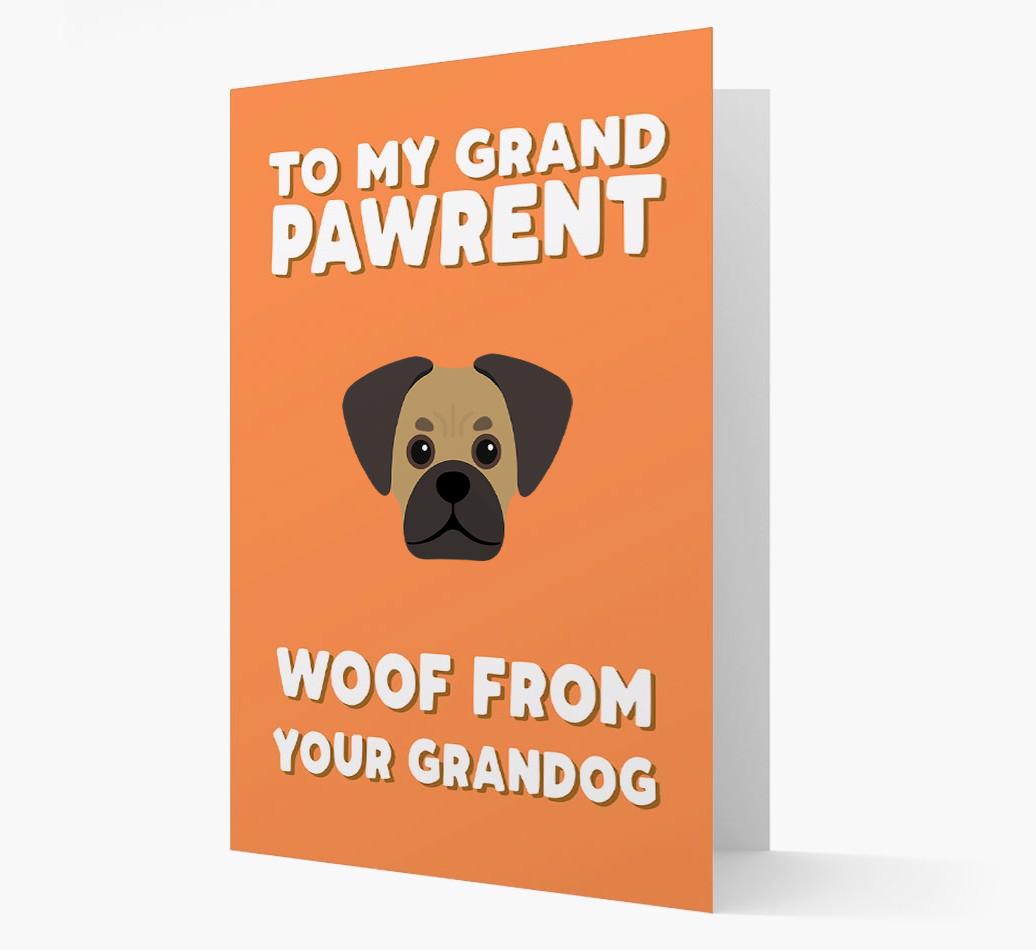 Featuring your Pugalier's pawsome icon and available in four eye-catching colors, Pugalier's grandpawrent will feel the woof each time they look at this card.