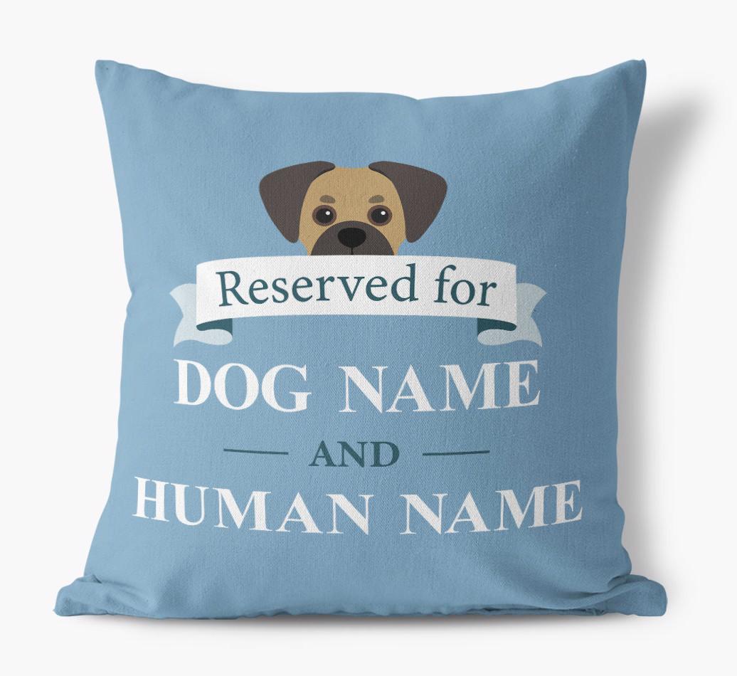 Personalized with your Pugalier's icon and available in five rustic colors, this pillow will reserve you and your furry friend a place on the sofa whilst reminding everyone of your un-barkable bond!
