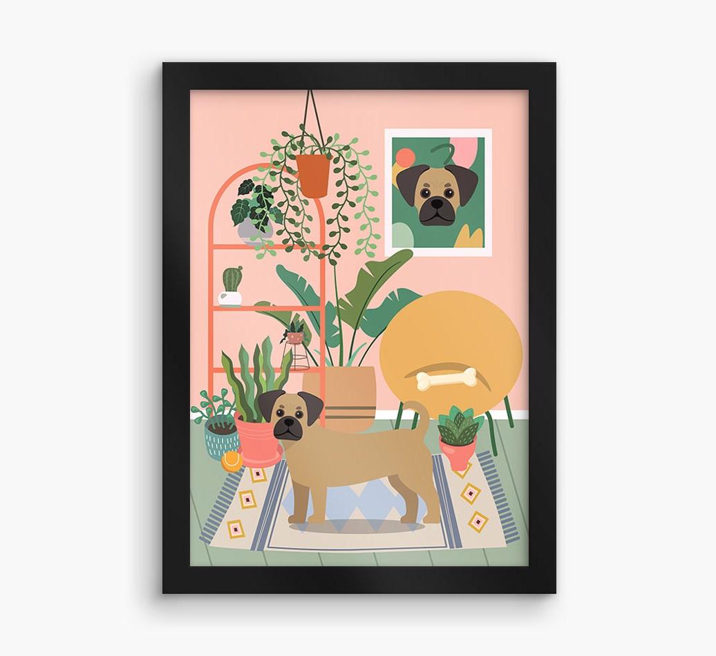 This contemporary piece of wall art pairs a chic living space with lovely pastel tones and a jungle of houseplants. Complete with the one that makes your house a home - Pugalier! - this print is a wonderful way to display your love for your pooch.