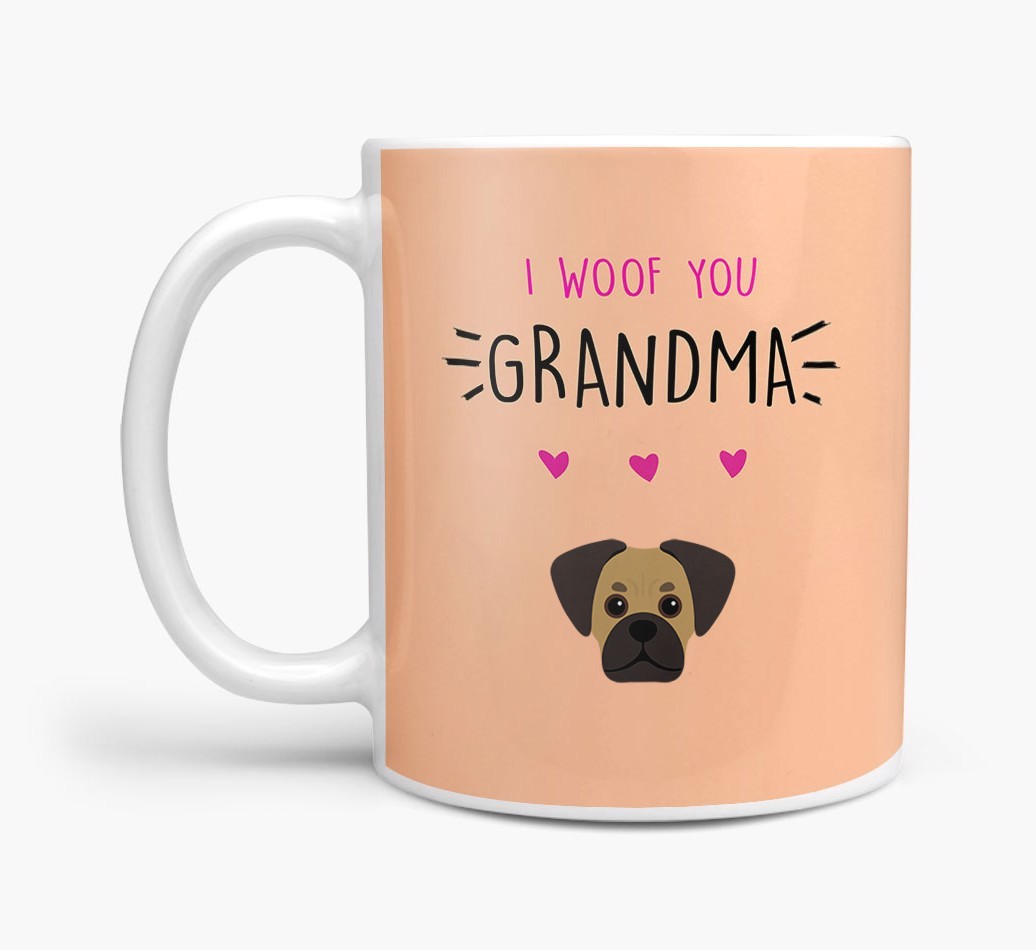 Personalized with your pup's adorable icon, this mug is a charming way to treat your pup's grandma and express how much you and Pugalier woof them.