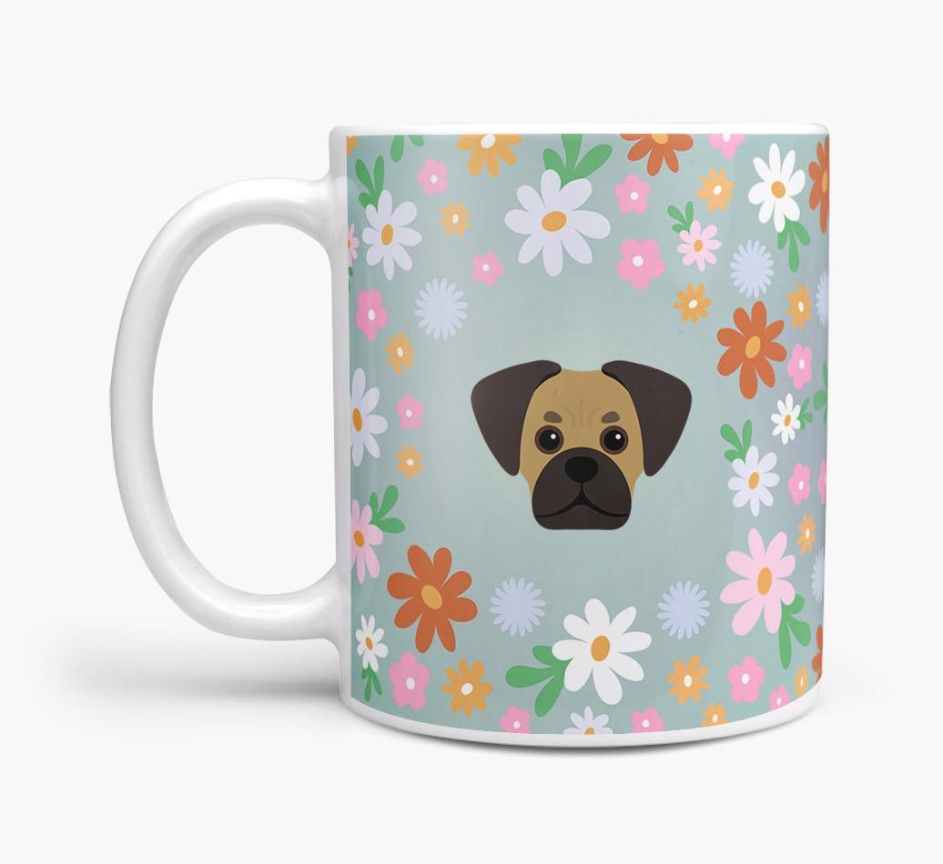 Featuring a colorful bunch of flowers, this mug is printed with the words 'woofly grandma' on one side of the mug and your Pugalier's cute icon on the other. Bloomin' lovely!