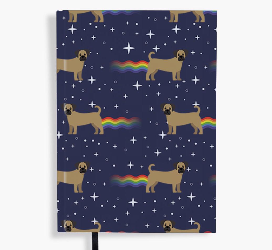 Featuring your cheeky Pugalier, lots of twinkling stars and available in a range of bold colors, this fun notebook is truly out of this world.