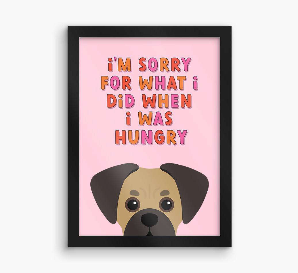 Does Pugalier turn into a hangry hound when they're hungry? Can you relate? With this print in the home, at least you'll always be reminded of how sorry your Pugalier is for their actions when they were hungry. Just look at this print and your Pugalier's cute face and all will be fur-given... Hopefully.