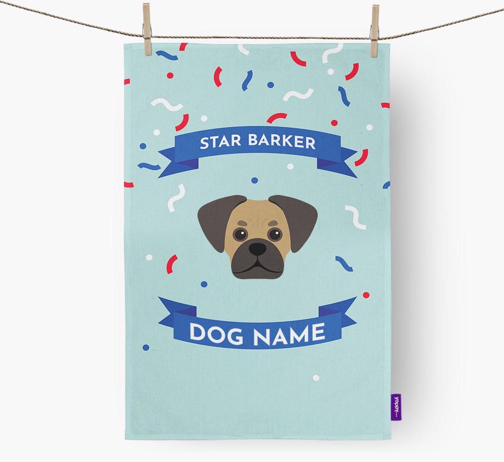 Now you can make sure your Pugalier’s new title is seen by everyone with this pawsome ‘Star Barker’ dish towel, pawsonalized especially for Pugalier.
