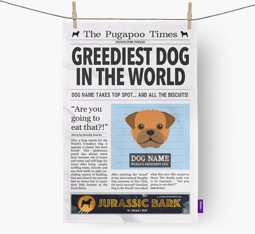 This unique dish towel puts Pugapoo truly in the spotlight (as if they weren’t already). It features a Yappy exclusive Pugapoo mug shot icon as well as two smaller Pugapoo silhouettes.