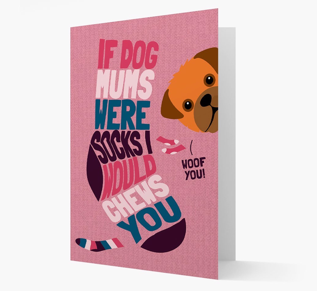 This comical card is pawfect for the Dog Mom who's pawrent to a sock-loving Pugapoo.