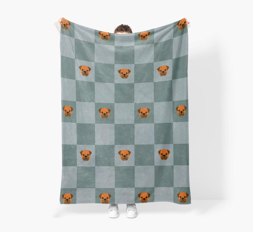 'Checkboard' - Personalized Pugapoo Blanket: Premium Sherpa Fleece