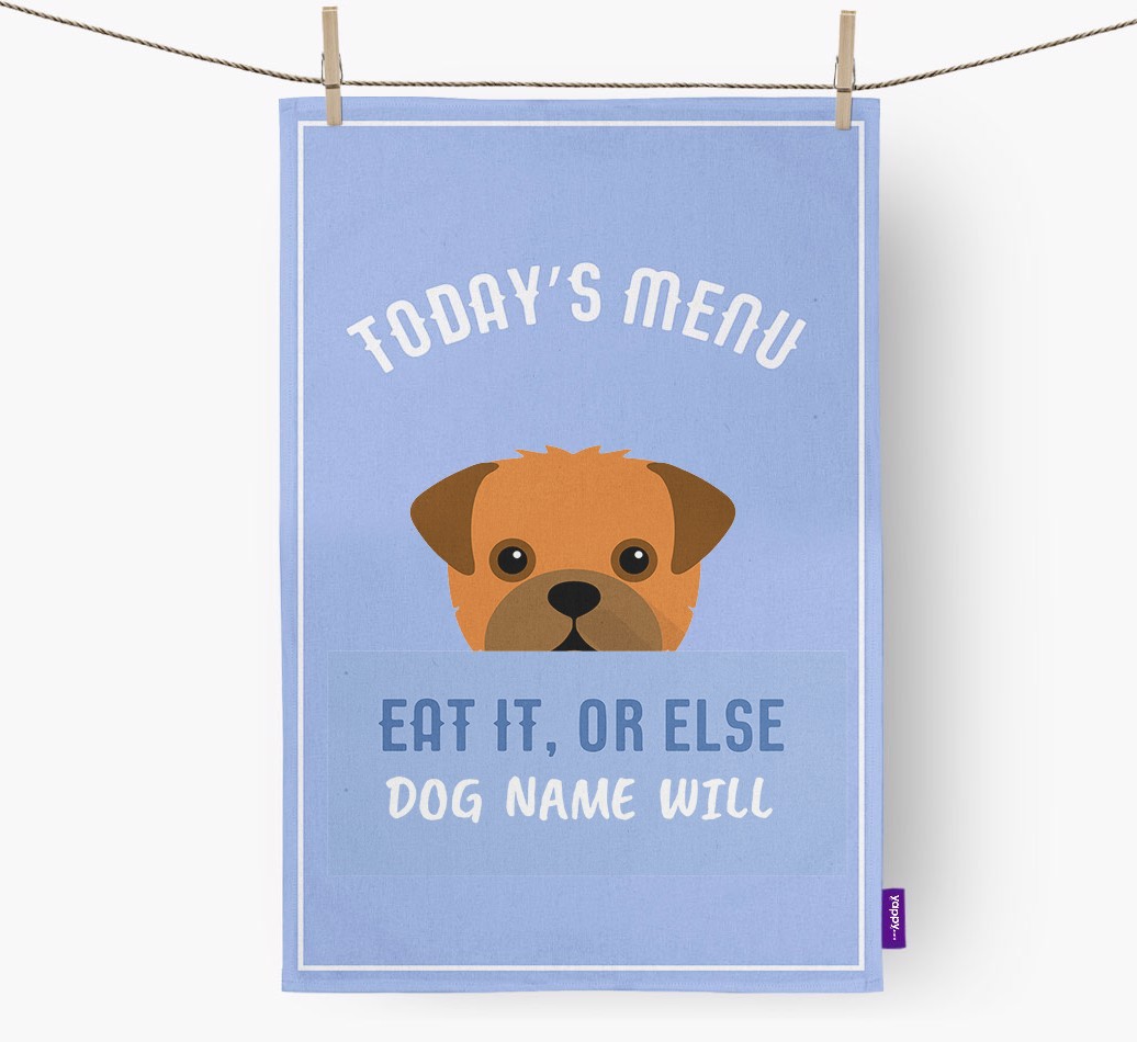 'Eat It, Or Else...' - Personalized Pugapoo Dish Towel