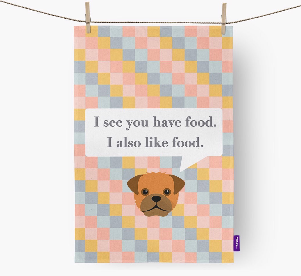 If your Pugapoo is a full time snack machine, this dish towel may be the ideal way to warn your guests.