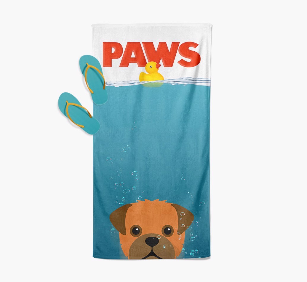 Featuring a design inspired by the blockbuster movie Paws, this colorful towel is personalized with Pugapoo as the lead character to make this an extra special gift.